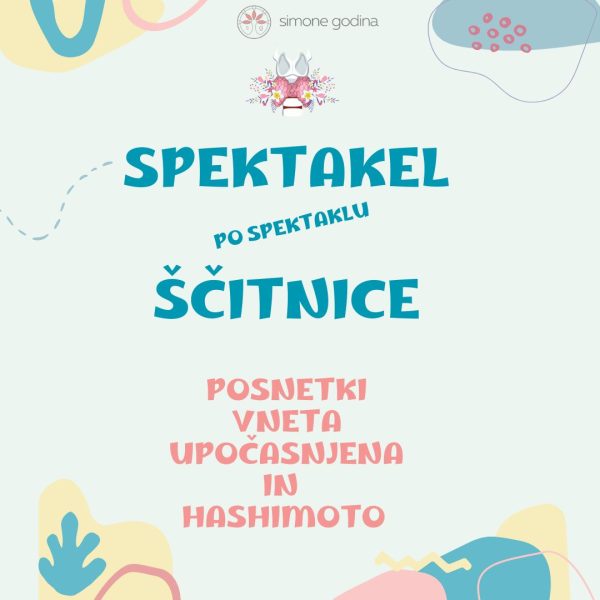 Spektakel po spektaklu, pa ti razjasni kaj se dogaja s tvojo ščitnico, od kje prihaja vse to tvoje slabo počutje, in simptomi, ki ti grenijo življenje, do te mere, da te imajo za leno in nesposobno, ti pa samo ne zmoreš in v posnetkih spoznaš zakaj in te naučim kaj je dobro početi, kaj jesti, kaj ne jesti, na kaj biti pozorna , kako se spremljati, da se to tvoje trpljenje in kronična utrujenost končno premakneta iz mrtve točke.